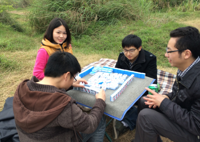 江風(fēng)拂面,坐著松軟的草地,聞著泥土的味道,那么你試過(guò)在這樣的江邊打麻將么?別樣的經(jīng)歷使得我們又多了些情趣,也多了許多回憶。